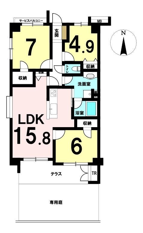 専有面積 76.41㎡ 所在階 5階建/1階部分